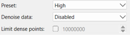 Use High Dense Reconstruction Preset and proceed to dense reconstruction process.