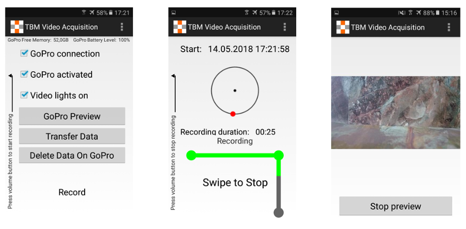 ShapeMetriX TBM features an intuitive Android app that guides operators through the entire imaging process — from system activation and camera preview to video recording and wireless data transfer. After recording a 370-degree cutter head rotation, video data is wirelessly transferred to the smartphone, then easily exported to computers for further 3D image construction and analysis.