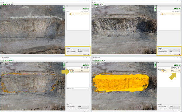 - In Underground Mode: Trim the models so only the relevant section remains for volume computation.