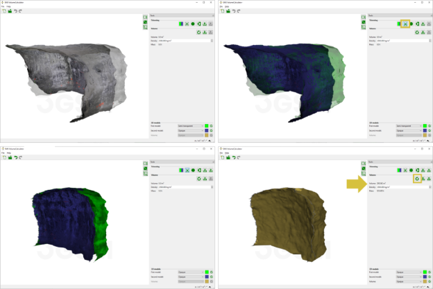 - Calculate Volume: The software instantly computes and displays the volume of the selected region. You can also input rock density to obtain mass estimates.